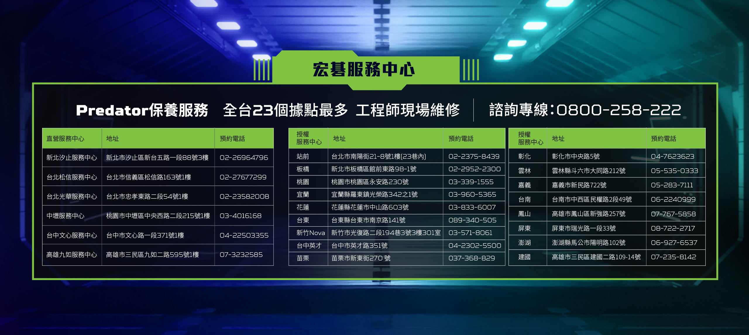 - 活動僅適用於保固內Predator全系列筆電,保固查詢保固資訊查詢https://dss.acer.com.tw/DSSApp/custservice/MachineQuery_EndUser.jsp