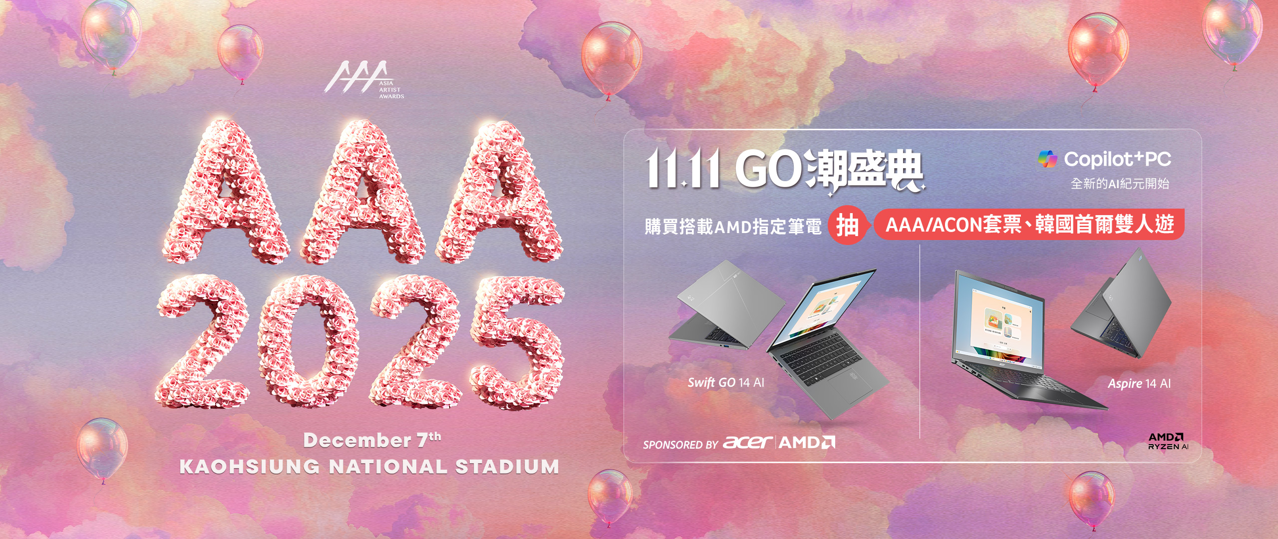 - 購買Acer搭載AMD處理器之筆電/桌機,於本活動網頁登錄購買資料並且審核成功,周周抽AAA+ACON雙人套票(價值$9,538X2=19,076),共四組。