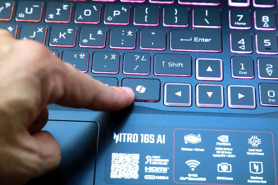 在 I/O 介面部分,Nitro 16S AI 滿足電競玩家需求,包括兩個 USB3.2、一個 USB2.0、一個 HDMI 2.1、兩個支援充電的 USB Type-C Thunderbolt 4 和 Micro SD 讀卡器與 3.5mm 耳機孔,能夠連接所有周邊裝置,輕鬆連接不設限。