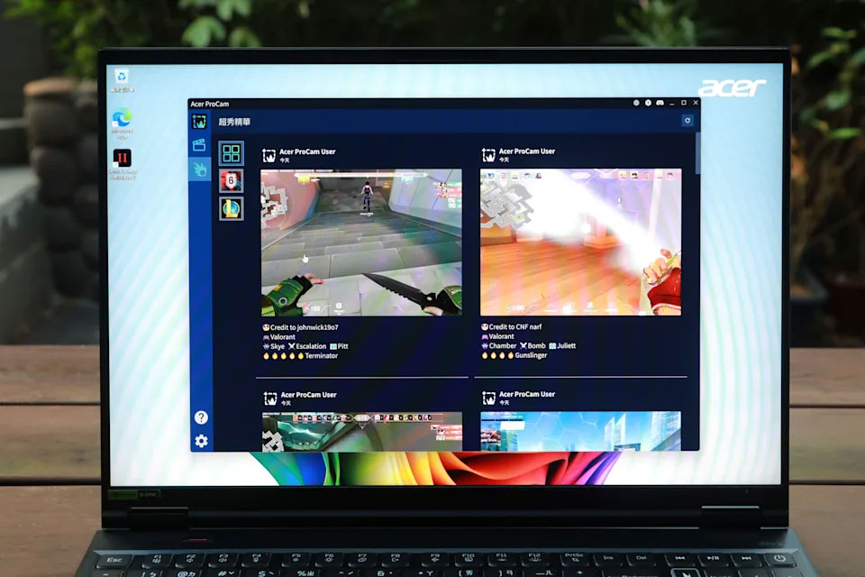 內建「Acer ProCam」是專為電競玩家設計的AI遊戲錄影工具,會在背景無縫運行,自動捕捉勝利、擊殺、擊倒等關鍵時刻,讓玩家能夠專注於遊戲而不被錄影過程干擾,內建編輯工具更讓玩家能夠輕鬆製作和分享遊戲高光片段。