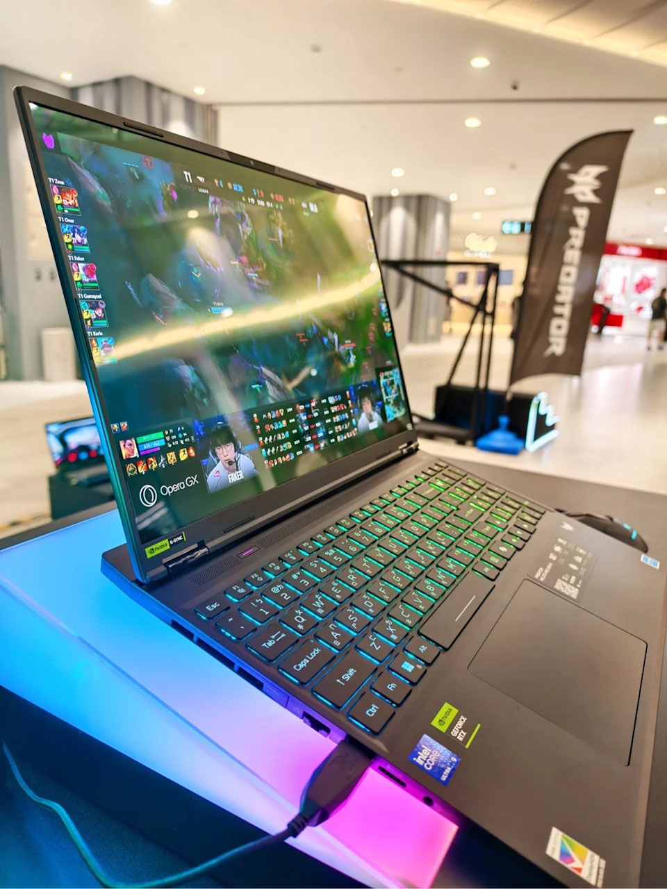 這台 Predator Helios Neo 16S AI 搭載的是 Intel Core Ultra 9 HX 處理器系列,再加上 GeForce RTX™ 5070 Ti 顯示晶片,不管是開設計軟體還是跑遊戲,都超順不卡頓!我現場試玩了幾款遊戲,畫面流暢得不得了,240Hz 超高螢幕刷新率真的不是說假的,手感跟視覺體驗直接拉到頂。剪輯影片的朋友們也不用擔心延遲或效能瓶頸,真的是一台兼顧創作與娛樂的筆電。