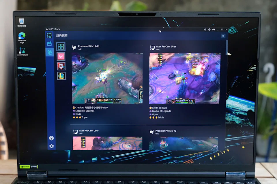 內建「Acer ProCam」AI 遊戲錄影工具,能夠自動偵測並記錄遊戲中的精彩時刻,會在背景無縫運行。