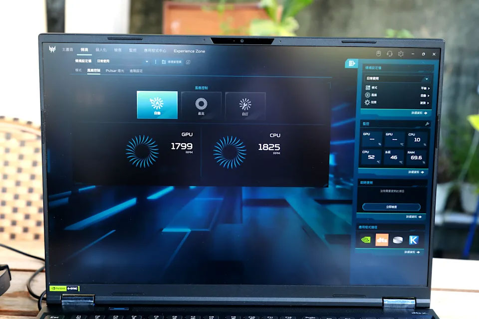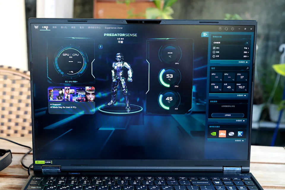 Helios Neo 16 AI內建獨家「PredatorSense」應用程式,當玩家按下「PredatorSense」專屬鍵後會進入系統監控介面