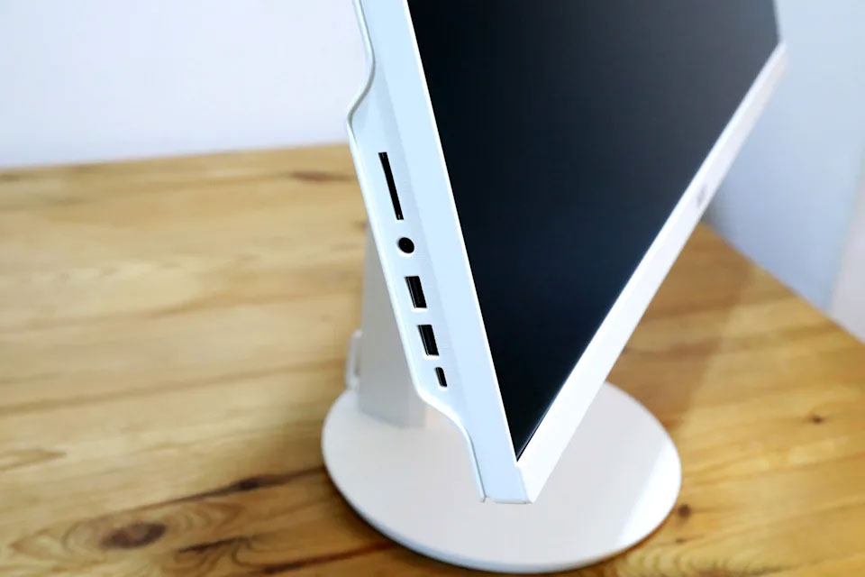 Aspire C27實用功能一應俱全,在I/O介面上,在機身側邊與螢幕下方共設有4個USB 3.2 Gen2、2個USB 2.0 Type-A埠、1個USB 2.0 Type-C埠及HDMI連接埠還配備SD記憶卡插槽,滿足各種外接裝置的需求,整體使用性相當完善。